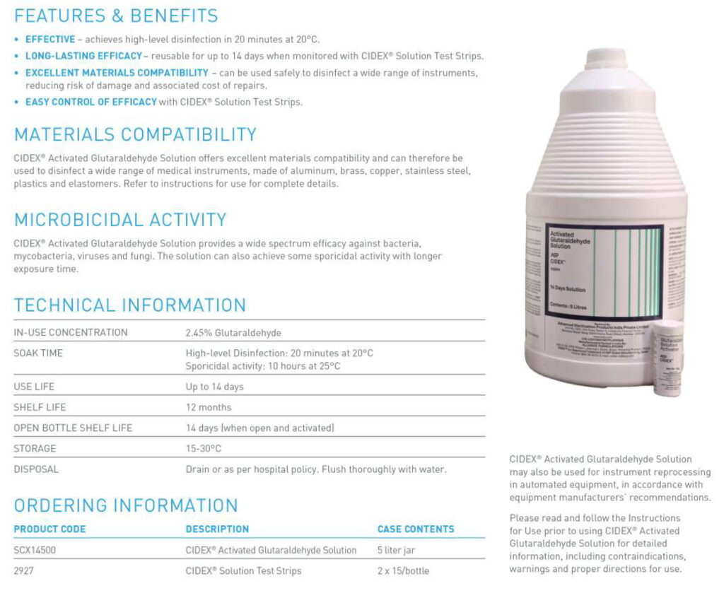 For over 50 years, CIDEX™ Activated Glutaraldehyde Solution has been used and recognized as a worldwide trusted brand for effective high-level disinfection of flexible endoscopes and other medical devices.
